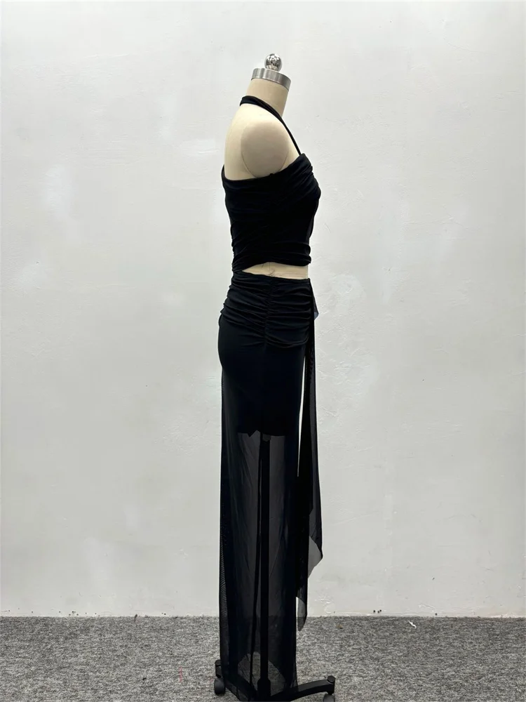 2 Piece Outfits Sexy Single Sleeve Top and Skirts Elegant Evening Bandage Women's Clothing