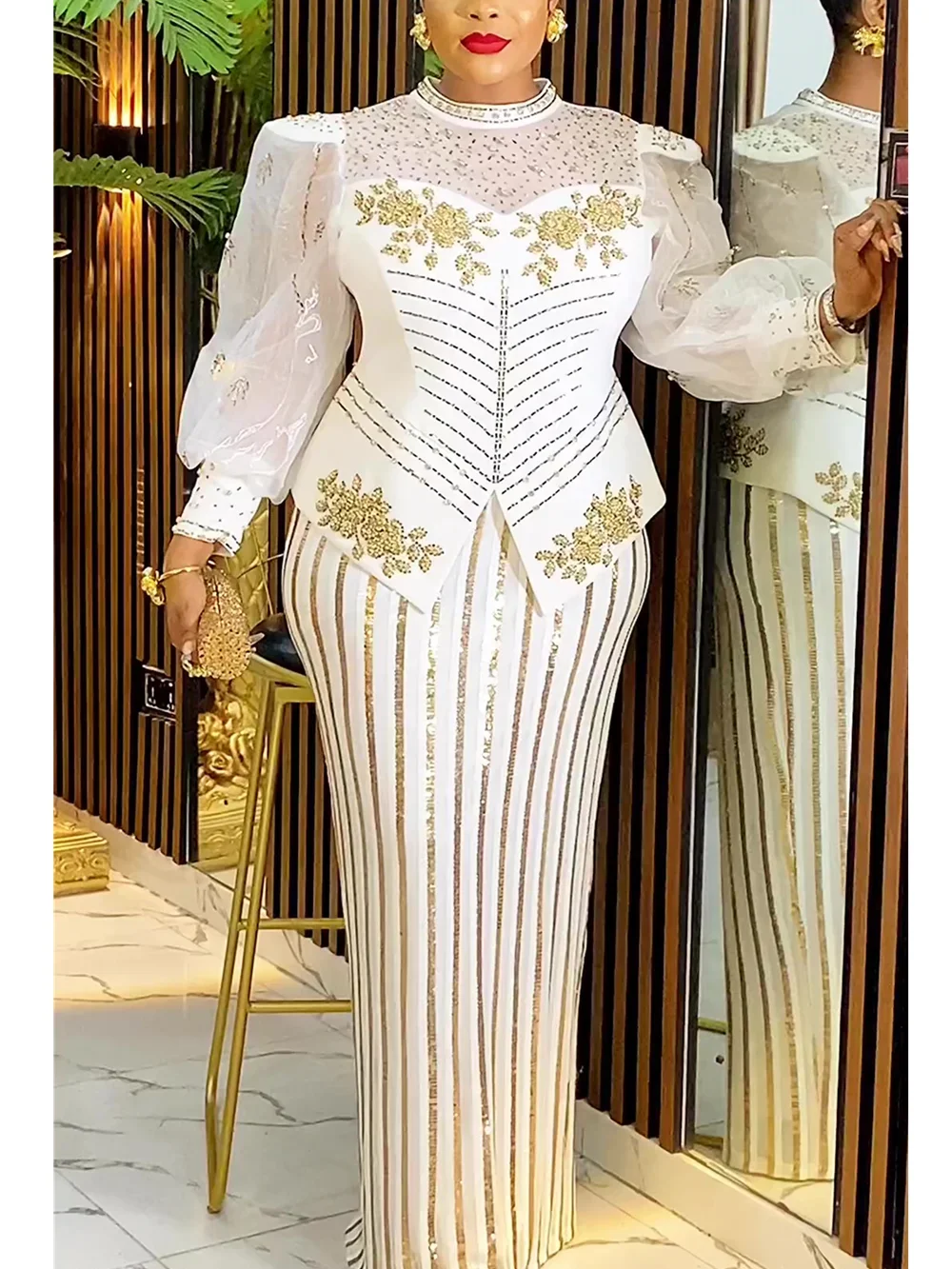 African Fashion Plus Size Sequin Evening Party Long Dress Dashiki Ankara Outfits Robe African Clothes