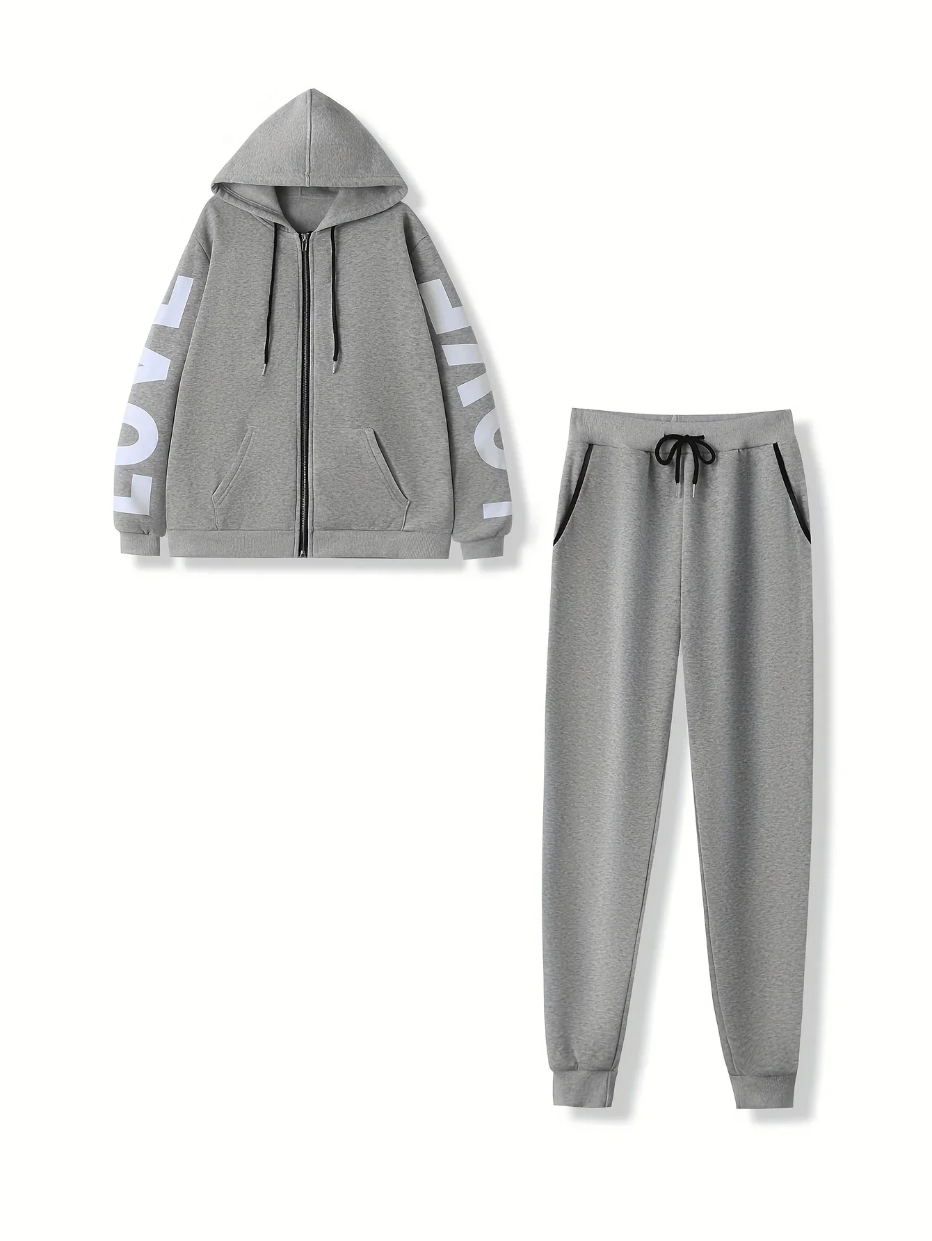 Casual GreyTracksuits Two Piece Set Women Sport Suit Hoodies Jogging Size