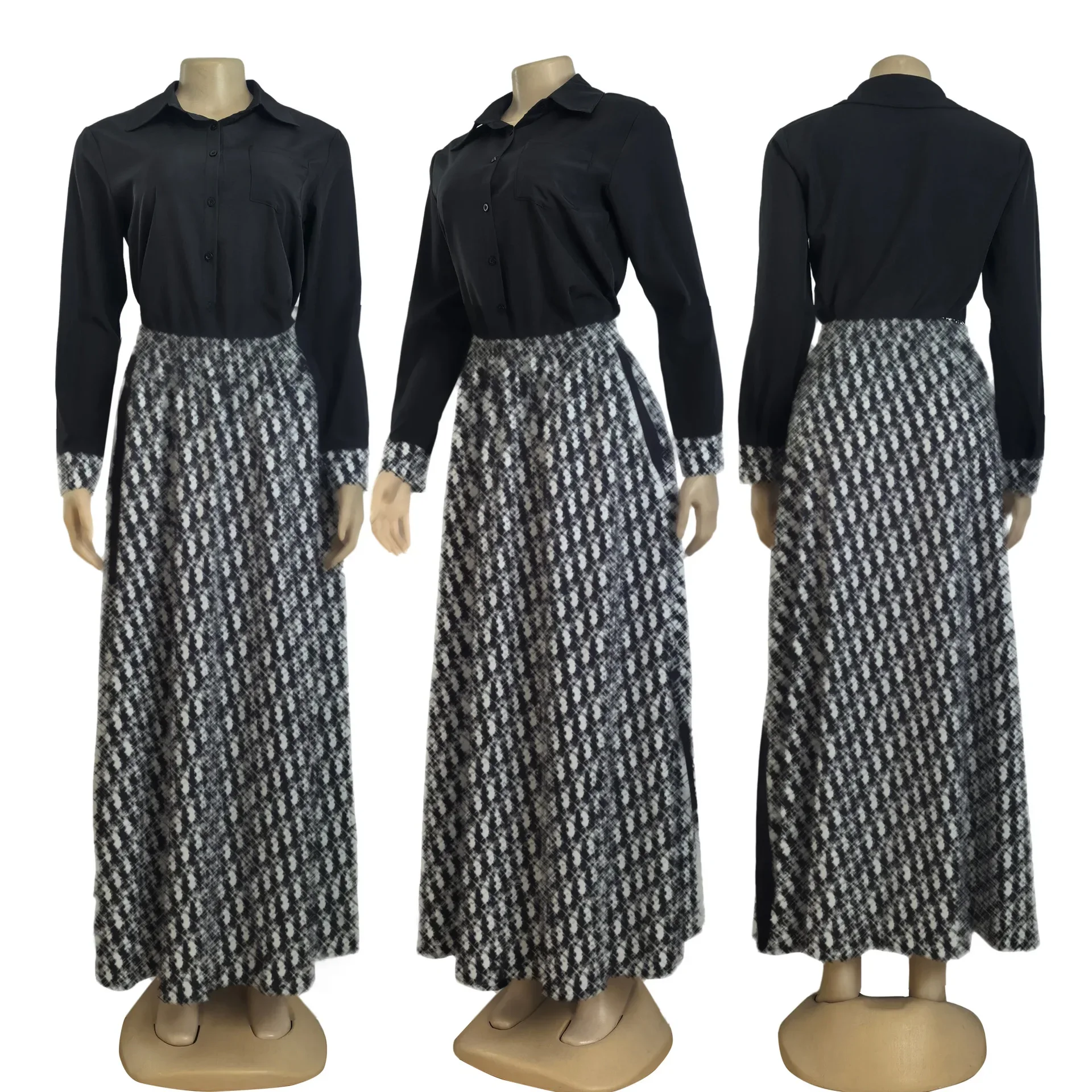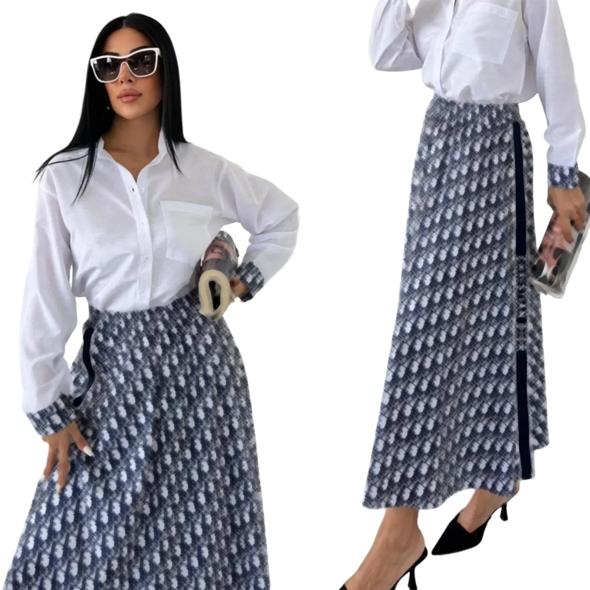 Elegant Print Long Sleeve Skirt Set Classy Women's Cross-Border Clothing Half-length Skirts Ensemble