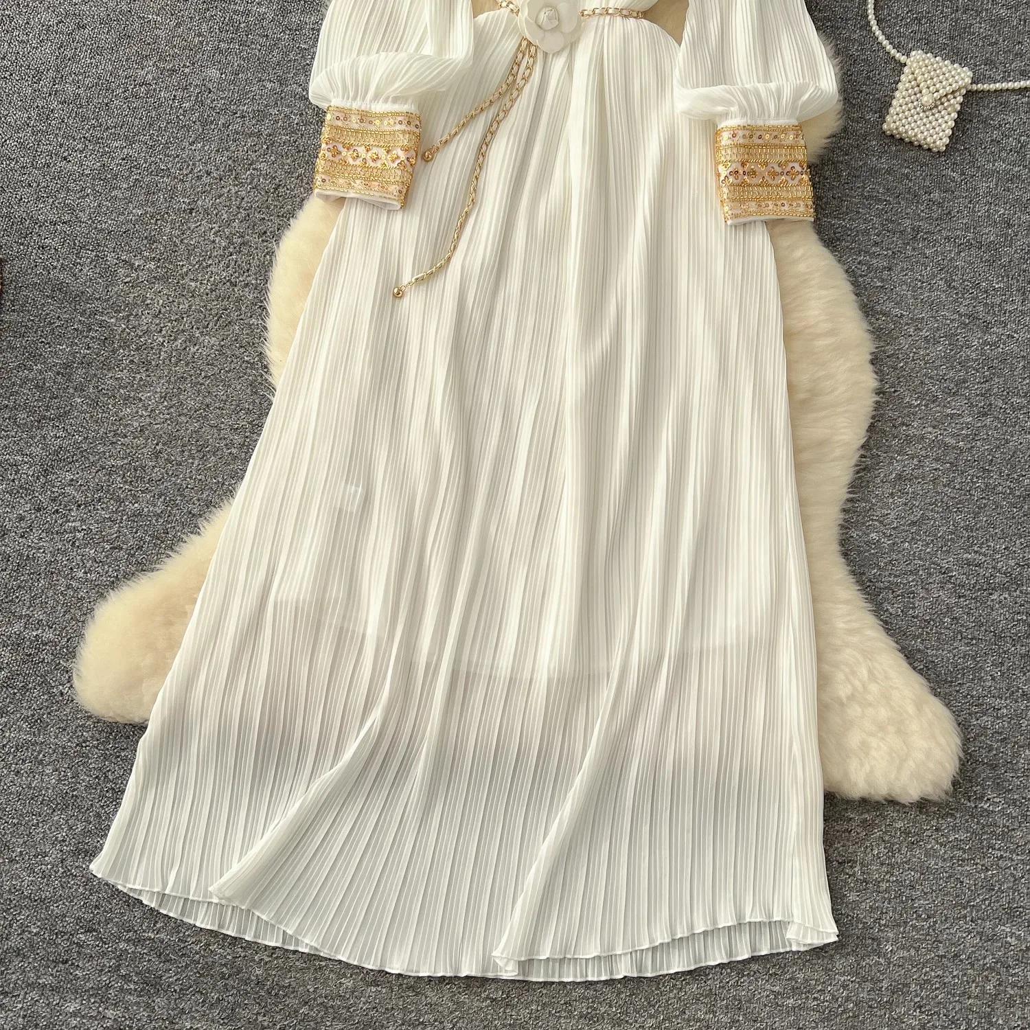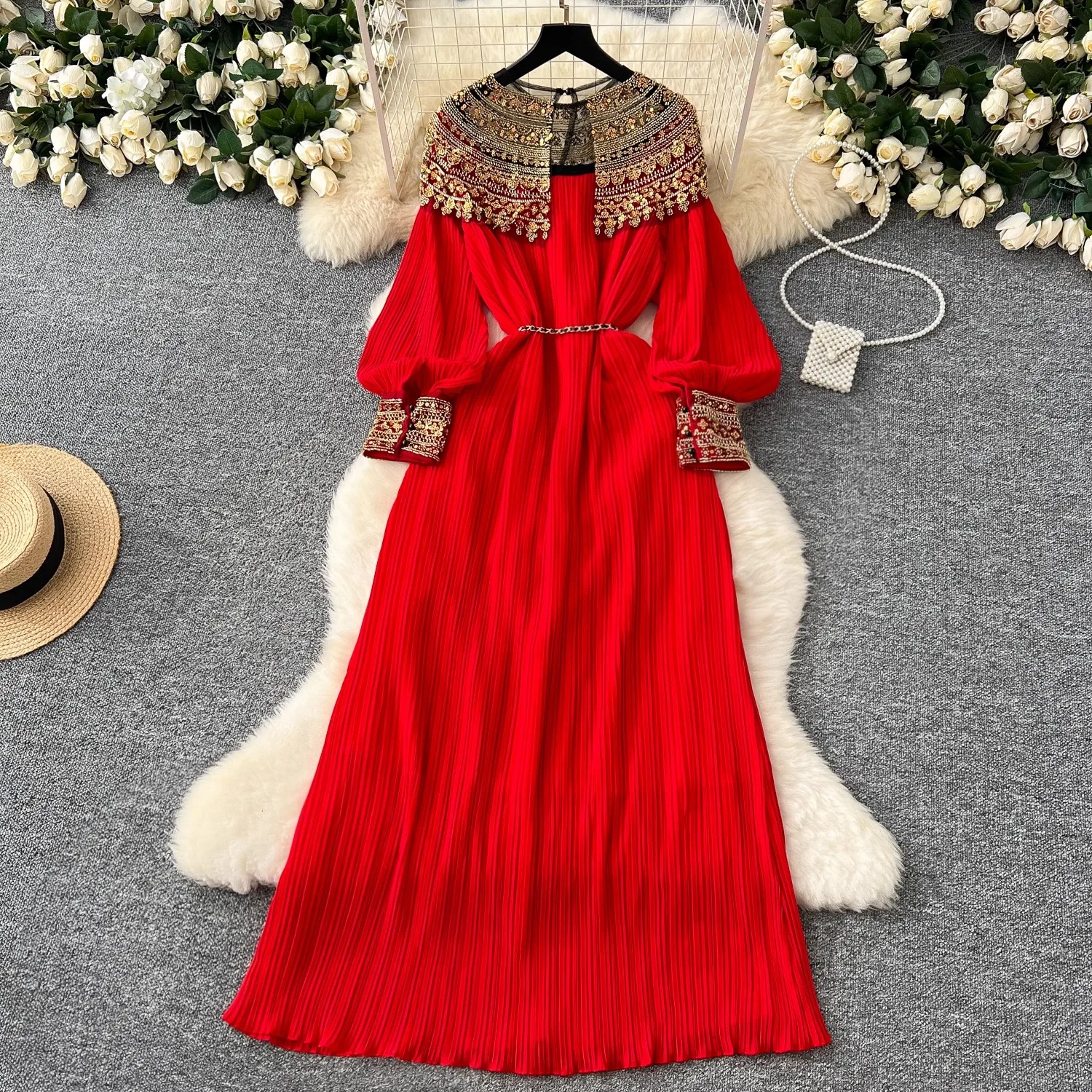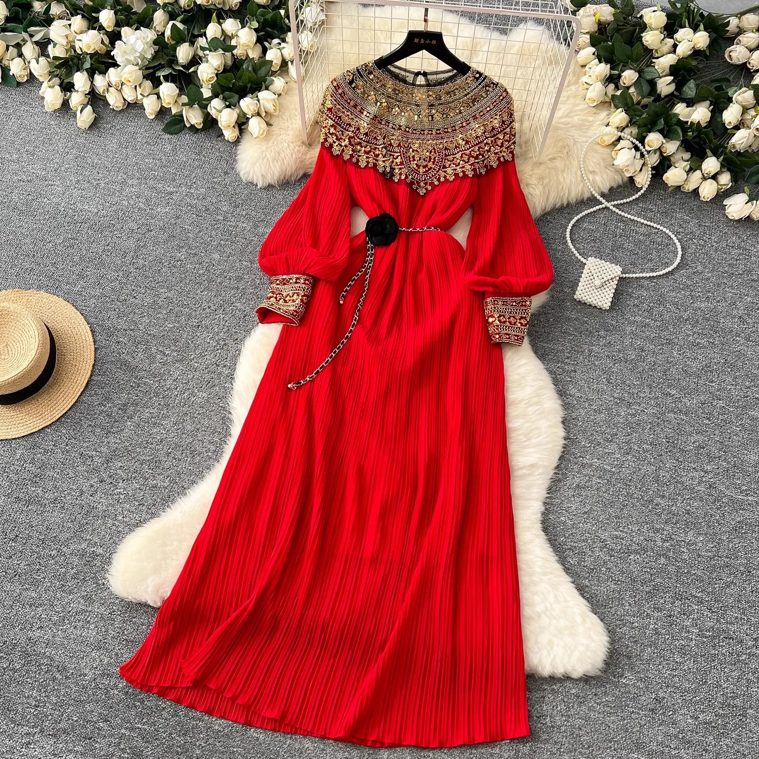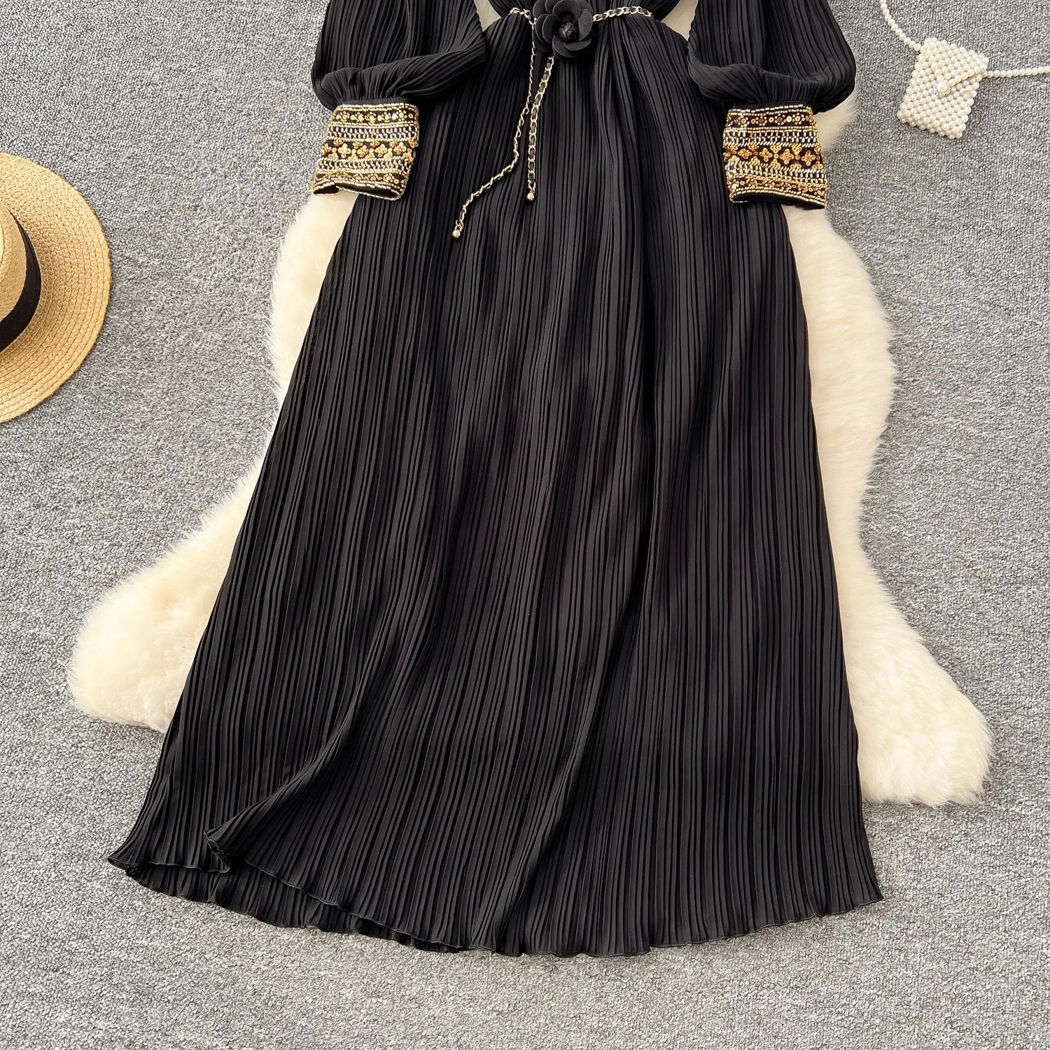 Luxury Shine Sequined Embroidery Beading Cape Splice Chiffon Formal Occasion Dresses Women Floral Belt Loose Robe Party Clothing